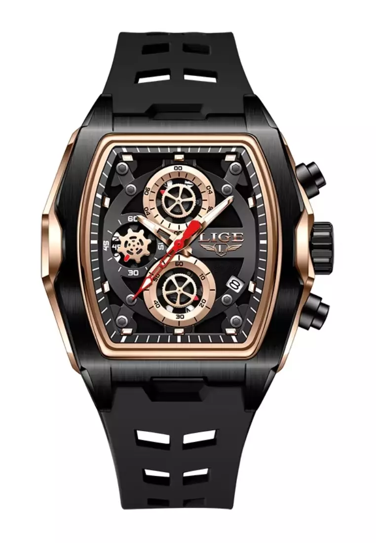 男女通用計時酒桶形塑膠和金屬合金石英錶,橡膠錶帶