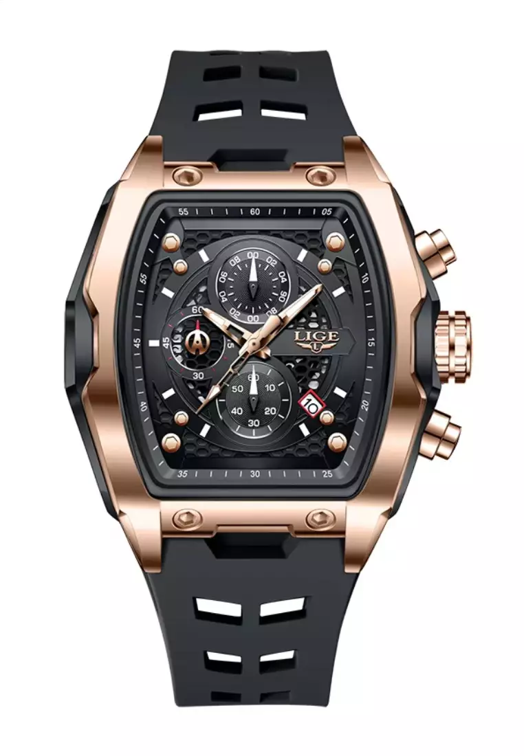 男女通用計時酒桶形塑膠和金屬合金石英錶,橡膠錶帶