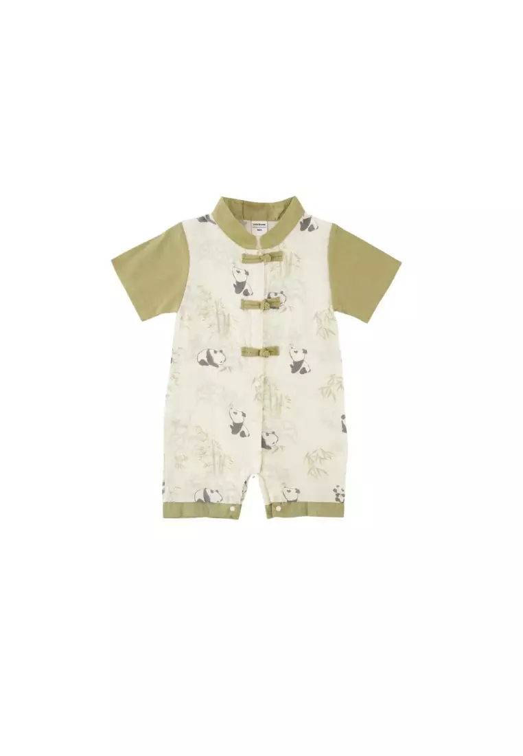 熊貓吃竹子嬰兒男孩唐裝漢服連身衣0841