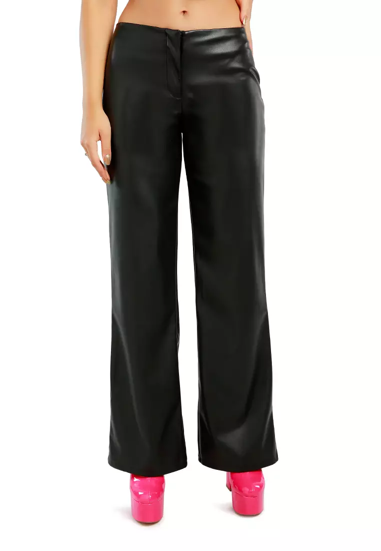 黑色低腰直筒長褲