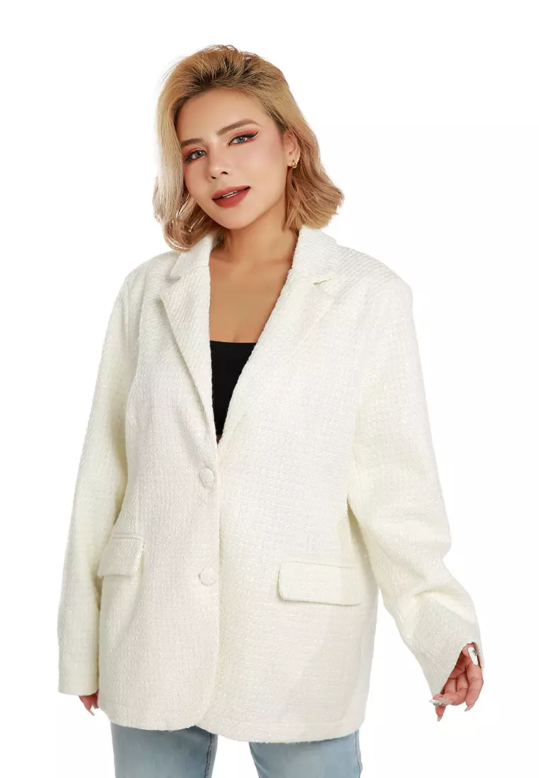 白色亮片裝飾大輪廓西裝外套