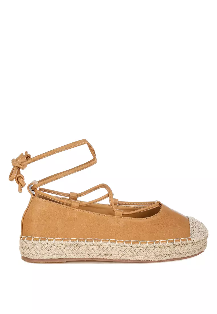 棕褐色編織鞋頭繫帶帆布鞋