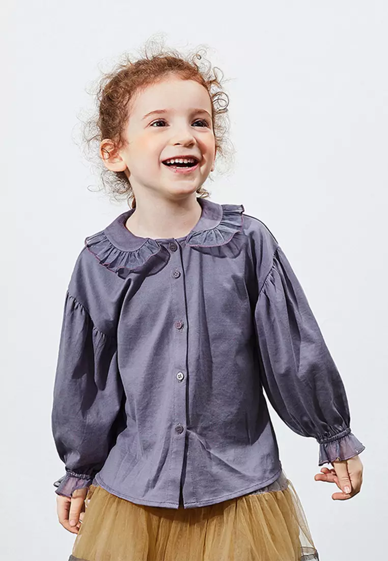 女大童长袖衬衫甜美公主荷叶边领白色衬衣