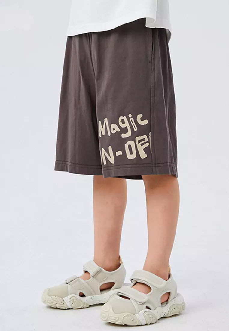男童针织短裤中大童趣味印花设计阔腿裤