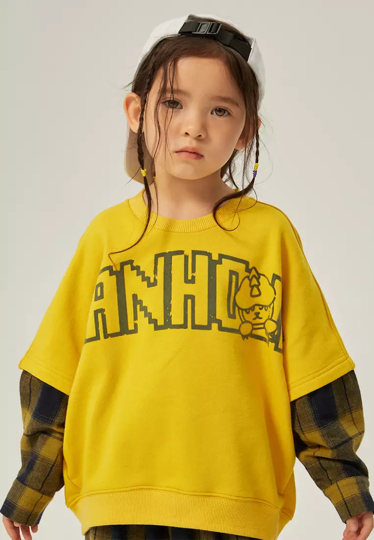 男童卫衣春秋款假两件连袖圆领上衣