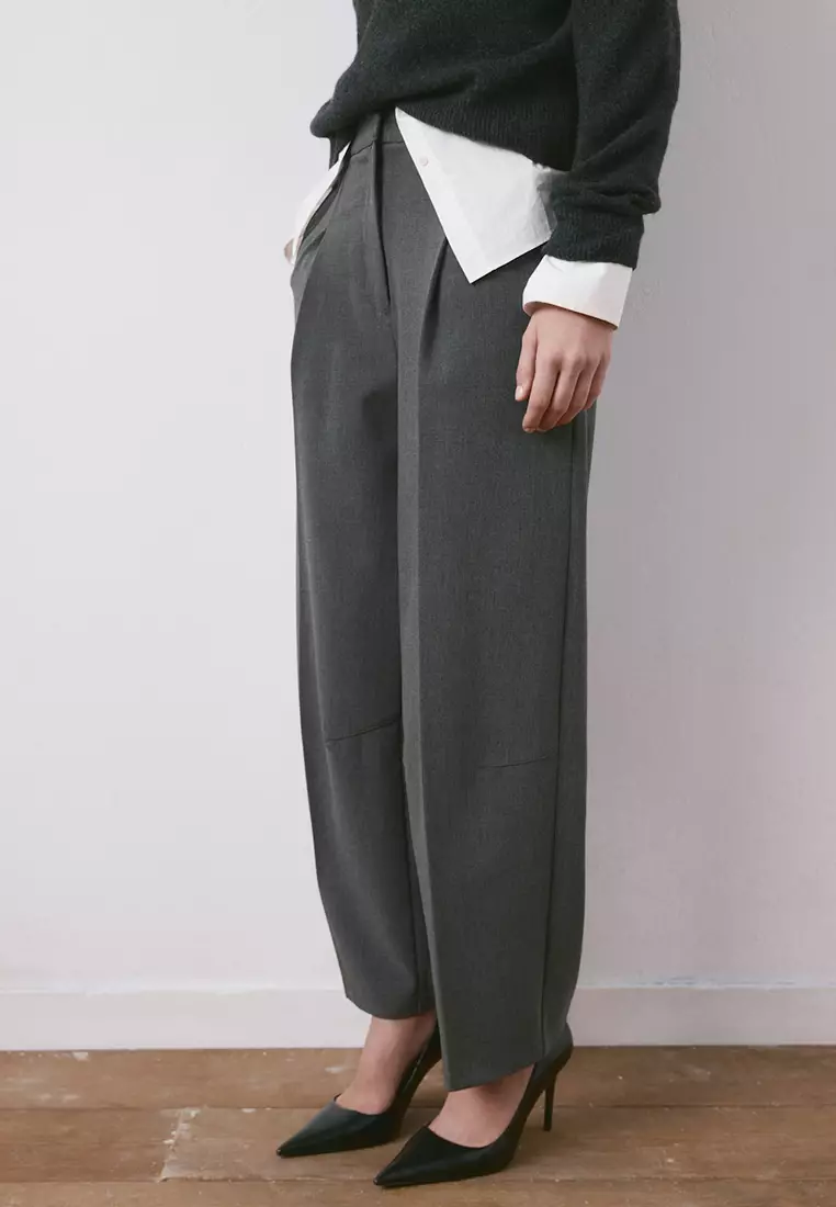 直管剪裁褶飾長褲