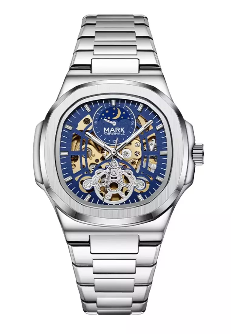 中性自動手錶,40 毫米不鏽鋼錶殼,不鏽鋼錶鍊