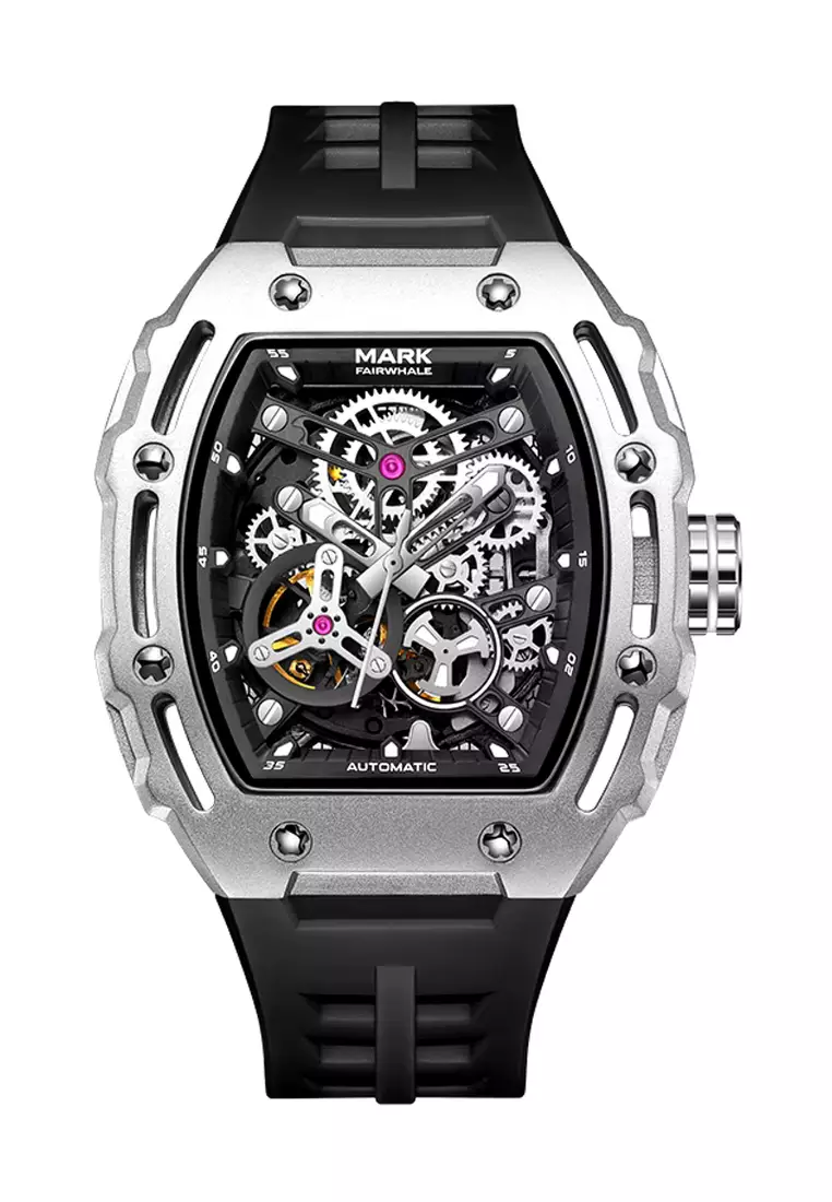 男女通用自動手錶,43 毫米,不鏽鋼,橡膠錶帶