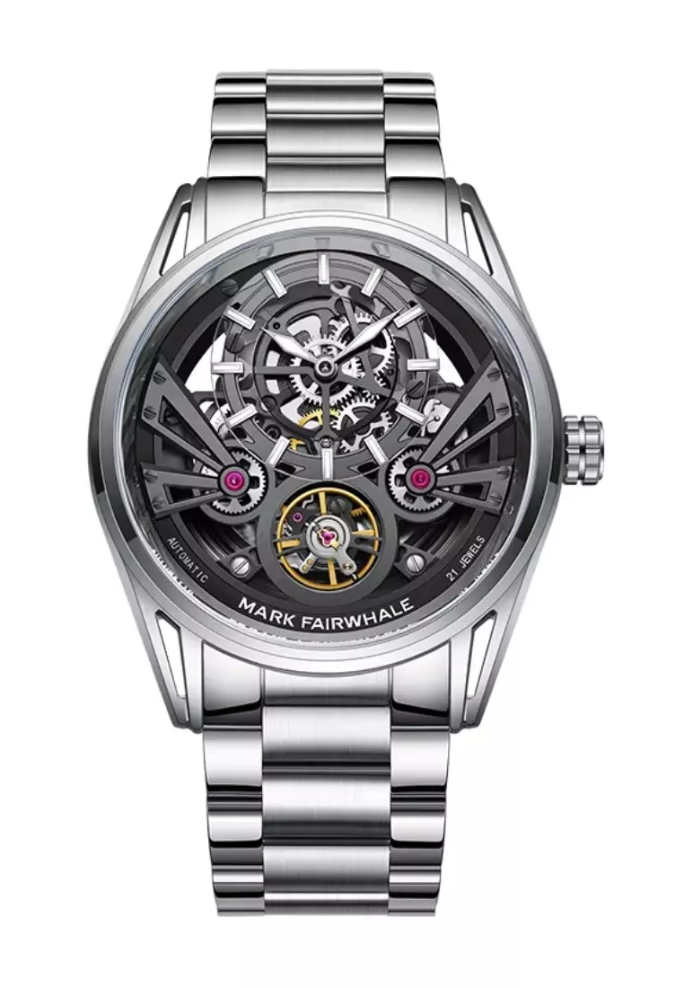 男女通用自動手錶,44 毫米輕質金屬合金錶殼,不鏽鋼錶帶