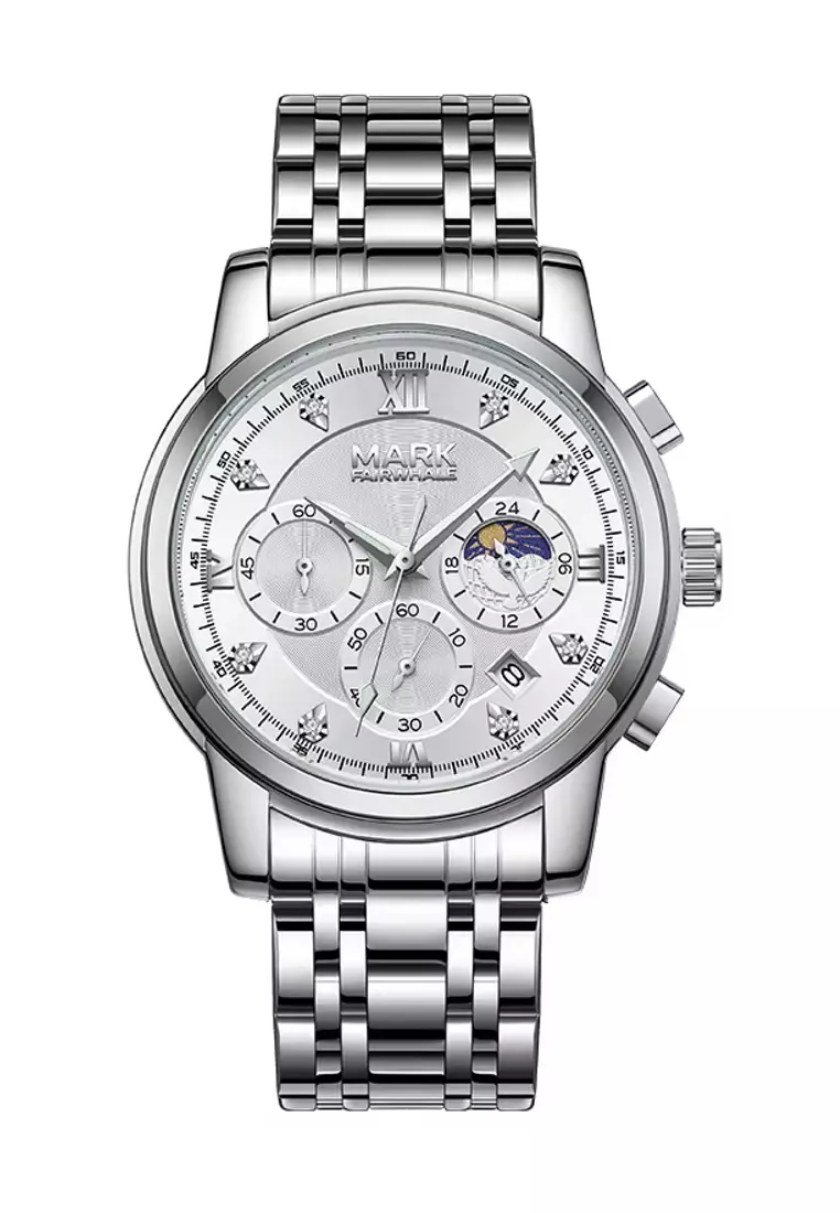 中性計時石英錶,銀色錶盤,40 毫米,鋼錶鍊