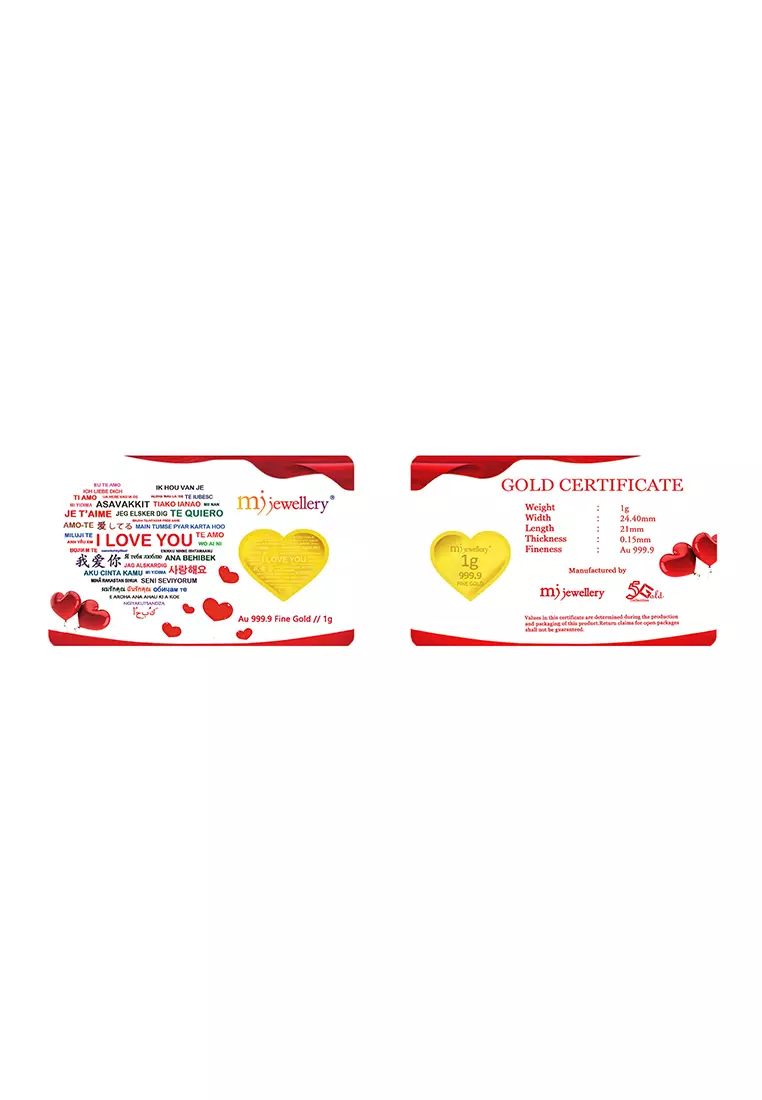 - Color: 999.9/24K Pure Gold - I Love You (1g)