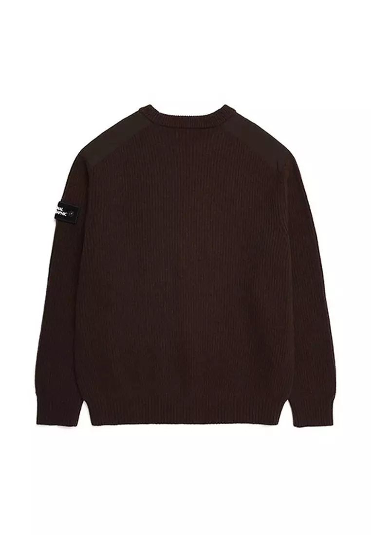梭織配色圓領針織毛衣