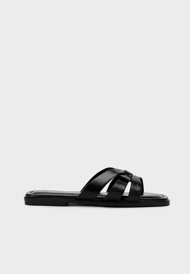 编织带方头平底拖鞋
