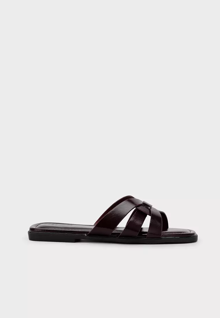 编织带方头平底拖鞋