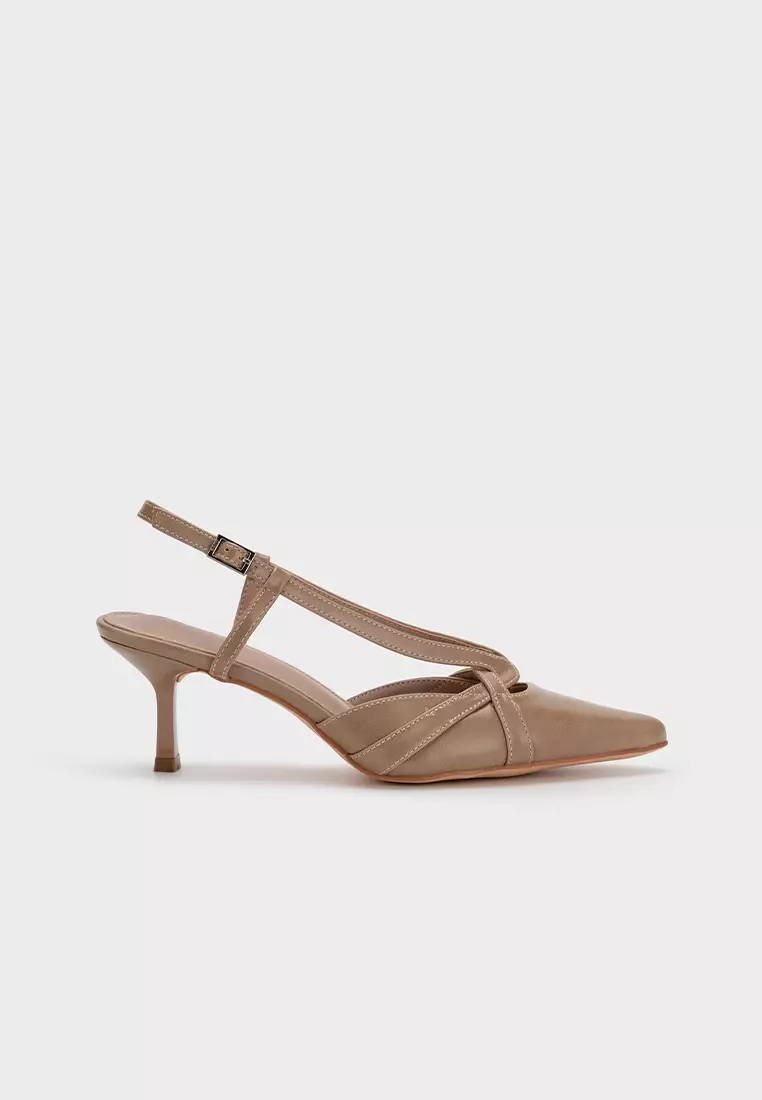 法式后空尖头高跟鞋