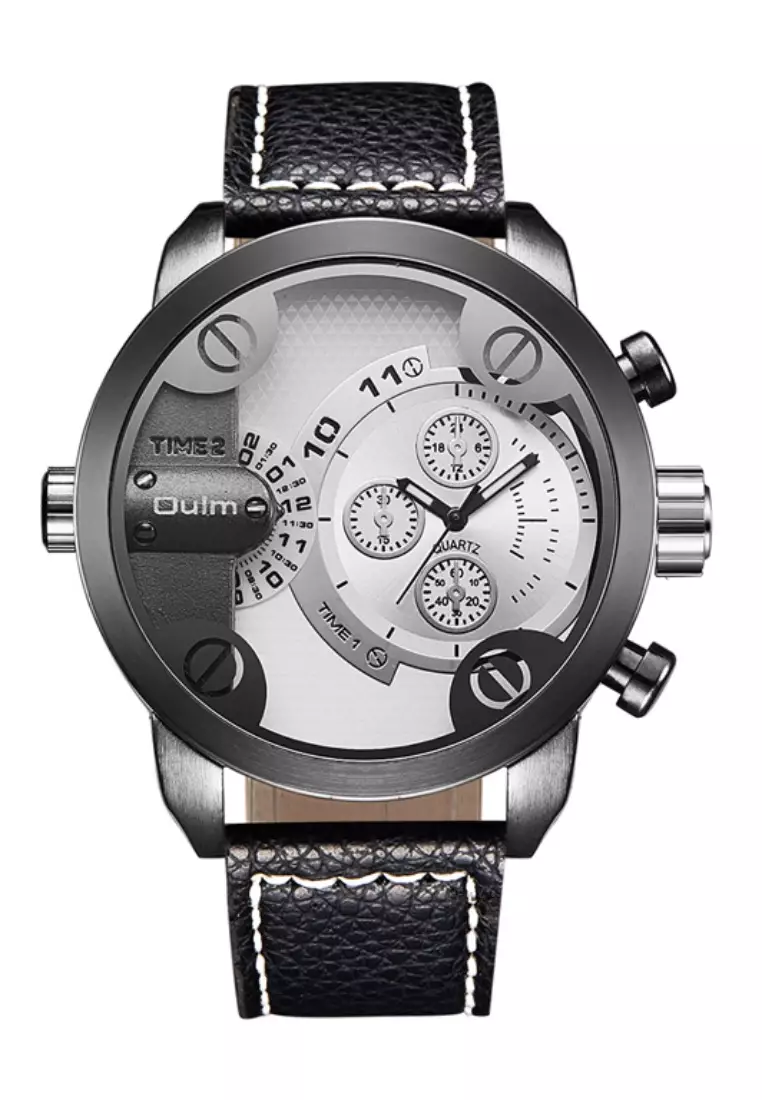 超大男士石英錶 - 50x50mm - IP 黑鋼錶殼、黑色和銀色錶盤、黑色錶帶