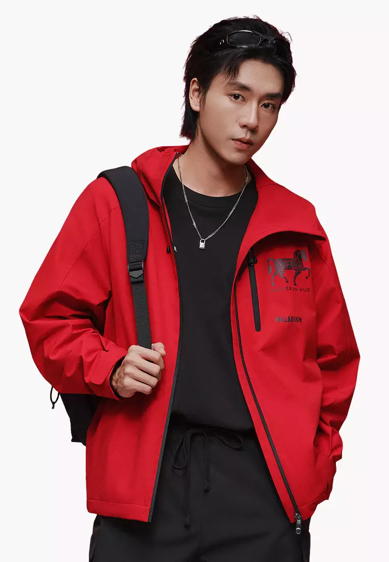 男裝馬年主題LOGO寬鬆防風防潑水連帽外套
