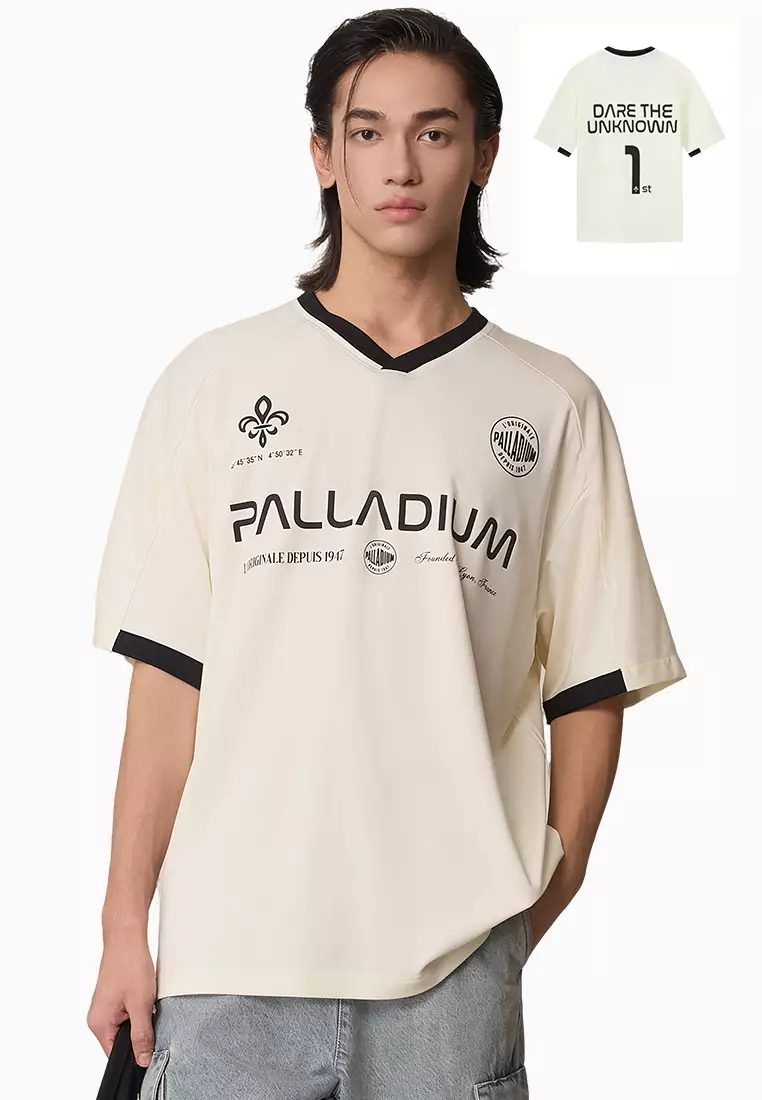 男裝 LOGO 復古寬鬆落肩拼色T裇