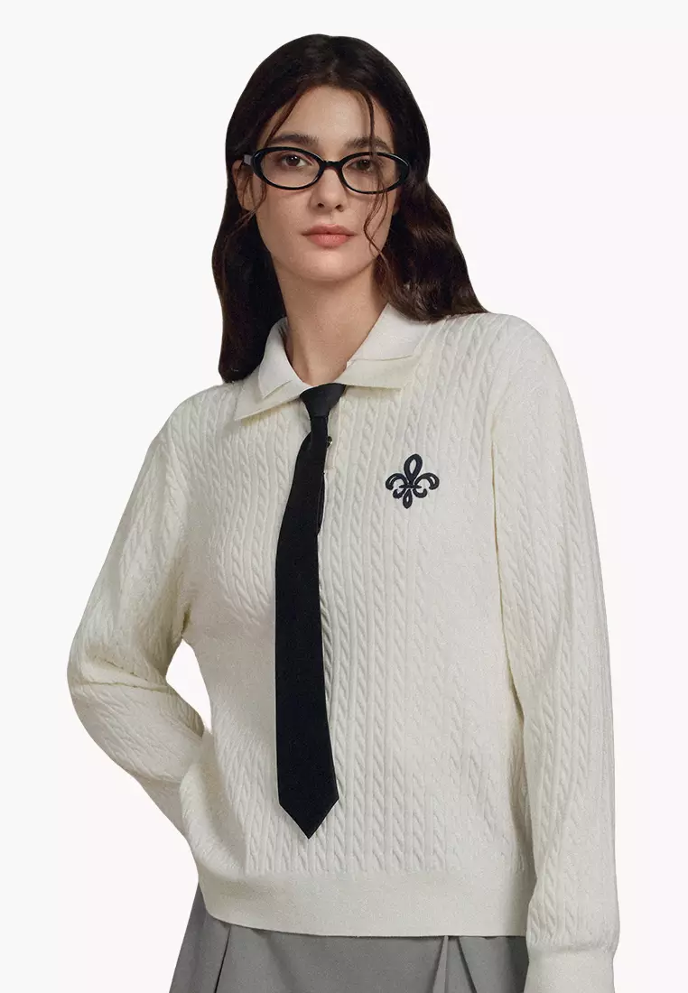 女裝鳶尾花 LOGO 絞花針織 POLO 毛衣
