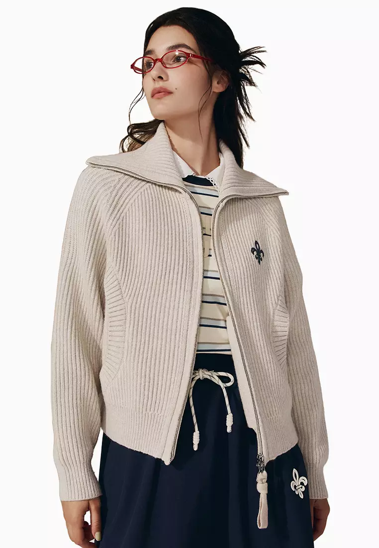 女裝鳶尾花 LOGO 雙向拉鏈開襟毛衣