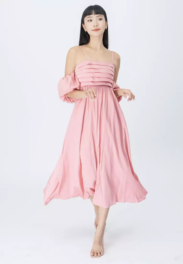 可调节肩带中长裙