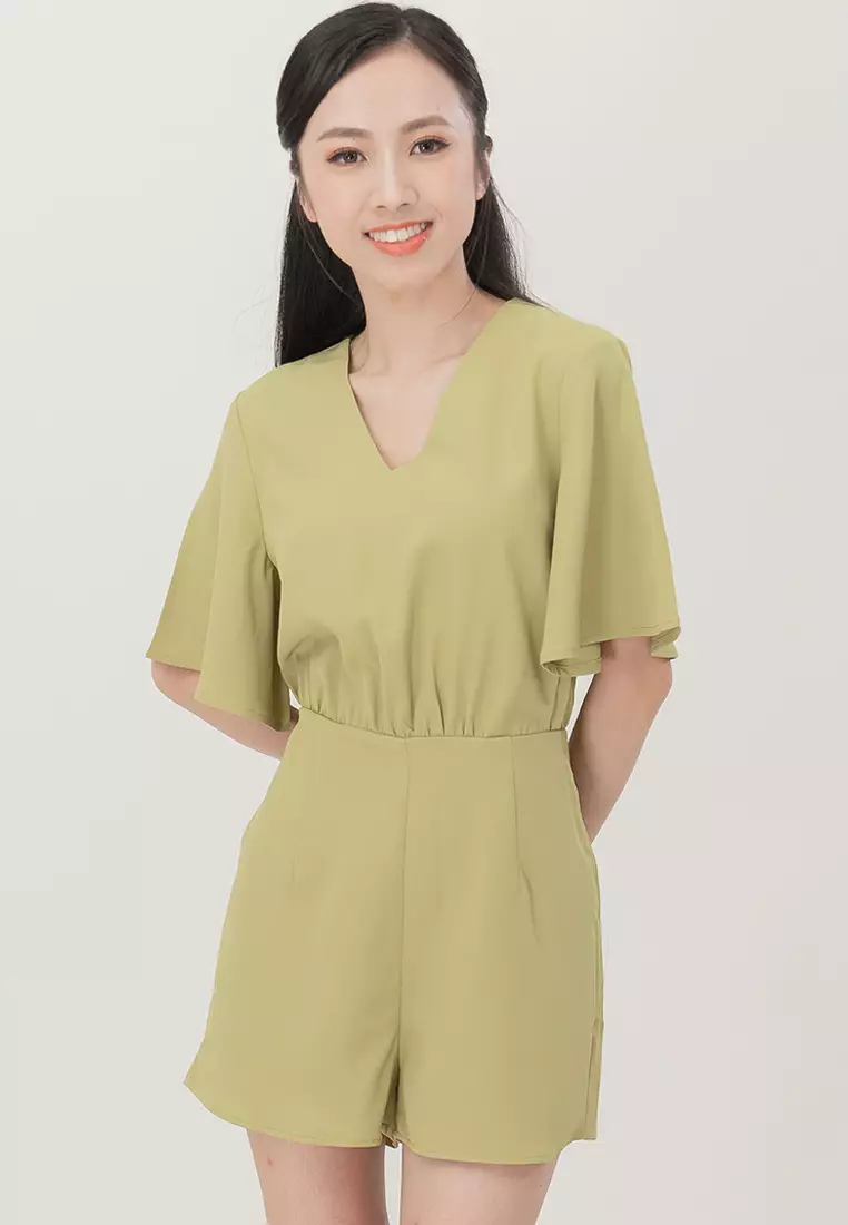 V领连体短裤