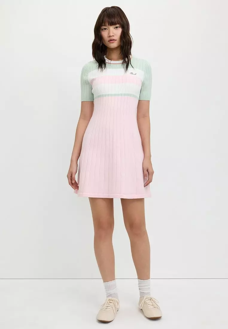 PomeloShort Sleeve Color Block Round Neck Ribbed Dress - Pink300.00