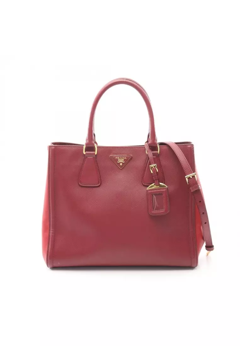 Pre-Loved Prada triangle logo Handbag Saffiano leather Bordeaux Red 2WAY