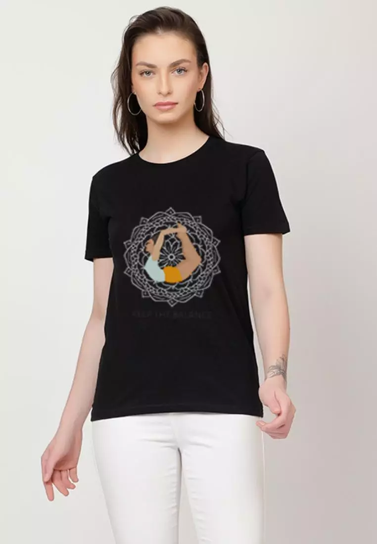 Keep TheBalance Relaxed 短袖时尚黑色棉质休闲图案印花 T 恤/T 恤