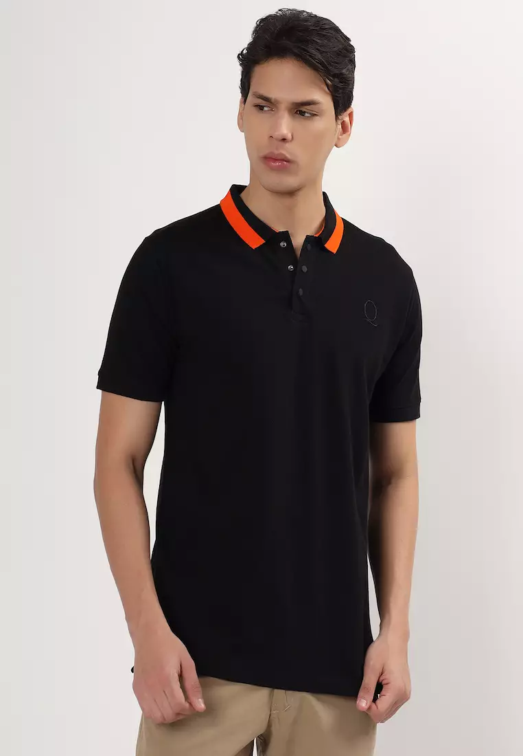 QuirkyT男士斜纹黑橙色棉质Polo衫/T恤,双面布,透气,短袖,刺绣,运动休闲,常规版型,三粒扣540.00273.00