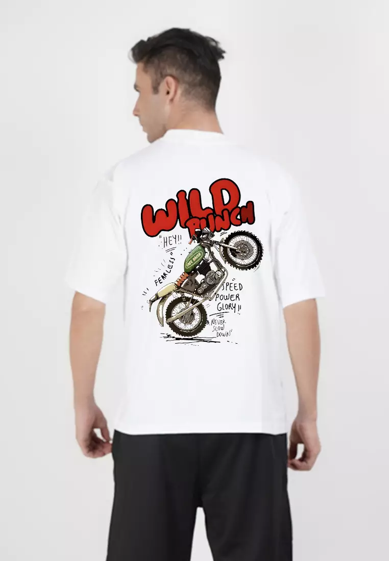 Wild Punch Biker 白色图案纯棉宽松版T恤/短袖T恤,圆领,休闲装,运动装,街头服饰