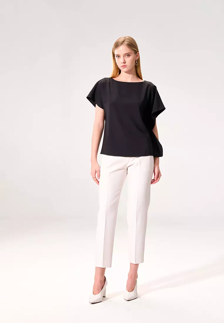 黑色不對稱連肩袖上著