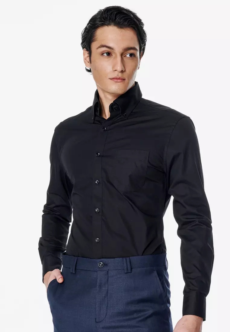 黑色素面標準版長袖襯衫