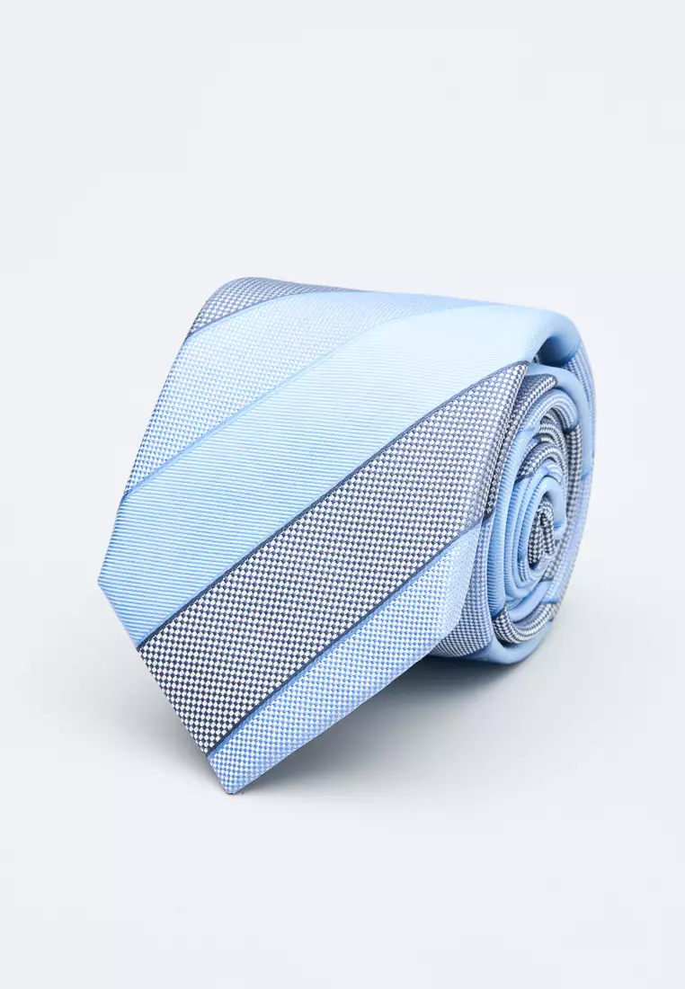 藍灰織紋斜條窄版領帶
