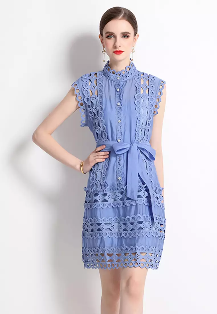 2025夏季圓領無袖蕾絲連衣裙CA24032624BL