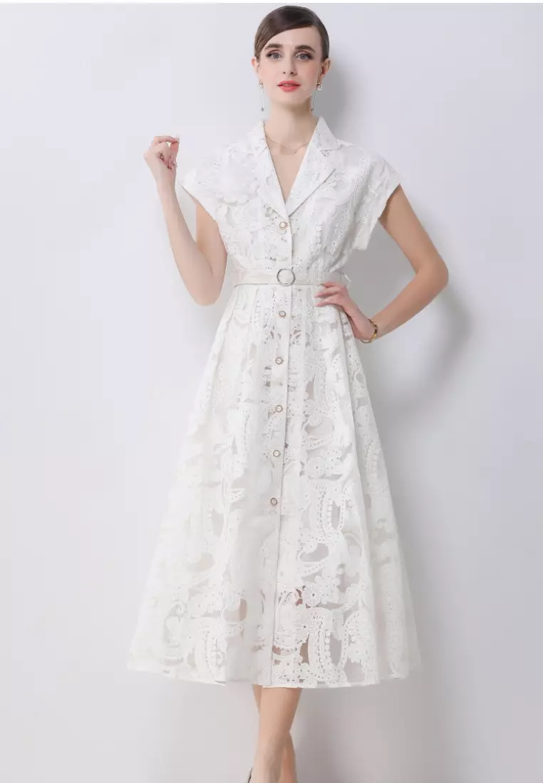 2026夏季單排扣刺繡修身連衣裙CA26022411W