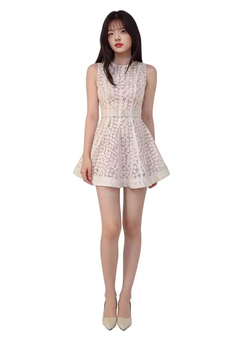 小雛菊蕾絲無袖收腰A字短連衣裙 CA26022436