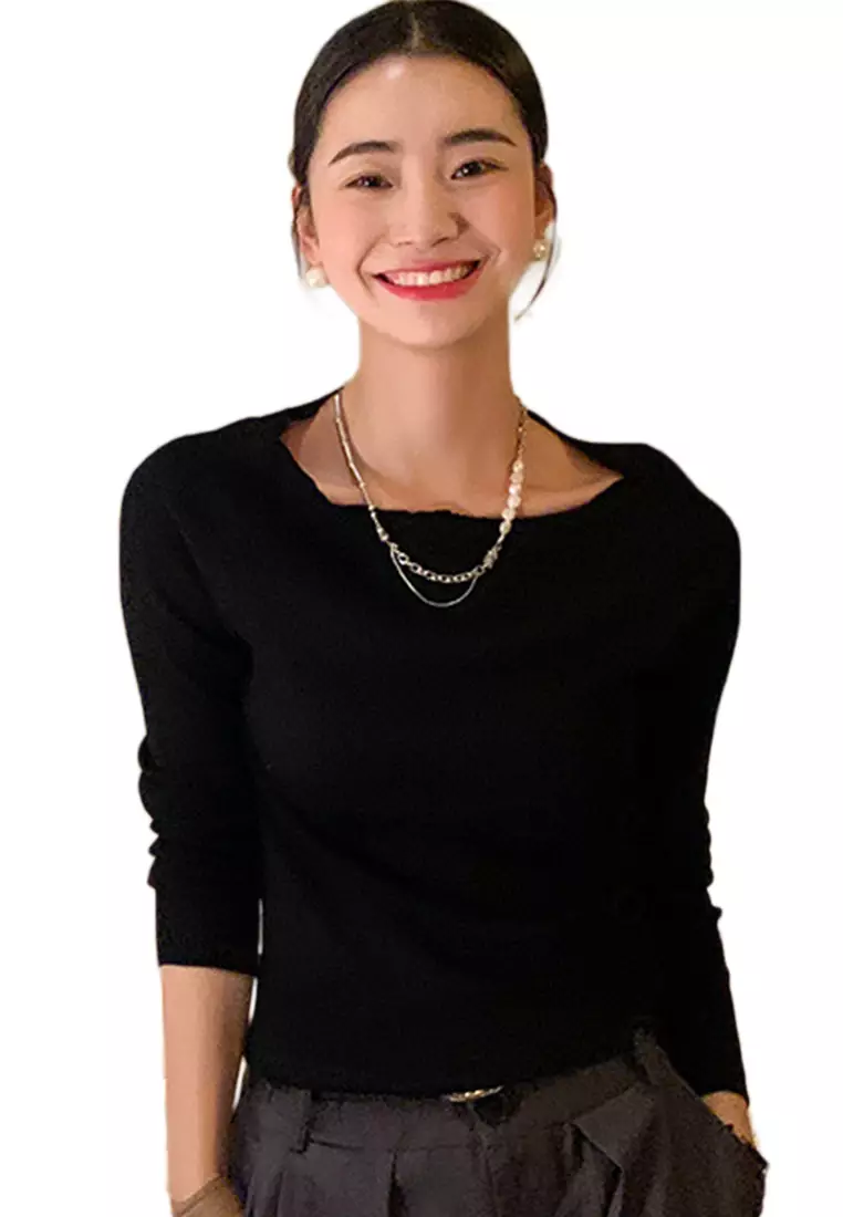 F/W 新款綿羊毛針織修身長袖女士上衣 A22090710BK