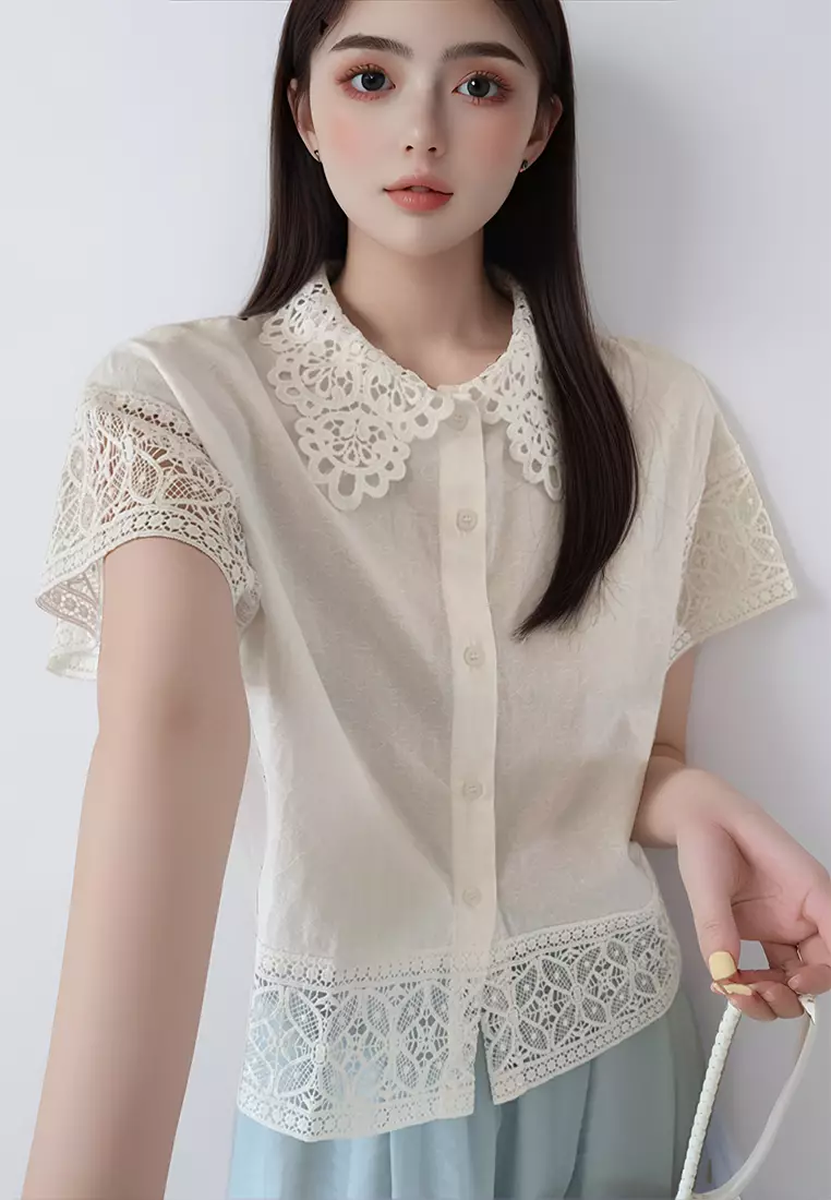 韓版溫柔花邊蕾絲上衣CA25042912W