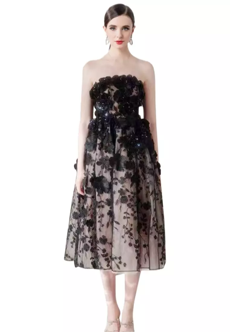 新品花朵公主刺繡抹胸連衣裙CA26022412BK