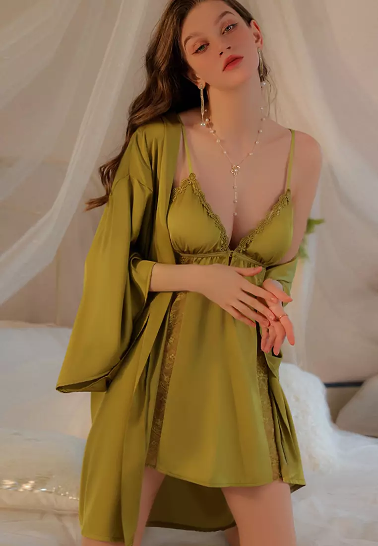 新款蕾絲露背吊帶連衣睡裙A010804GR