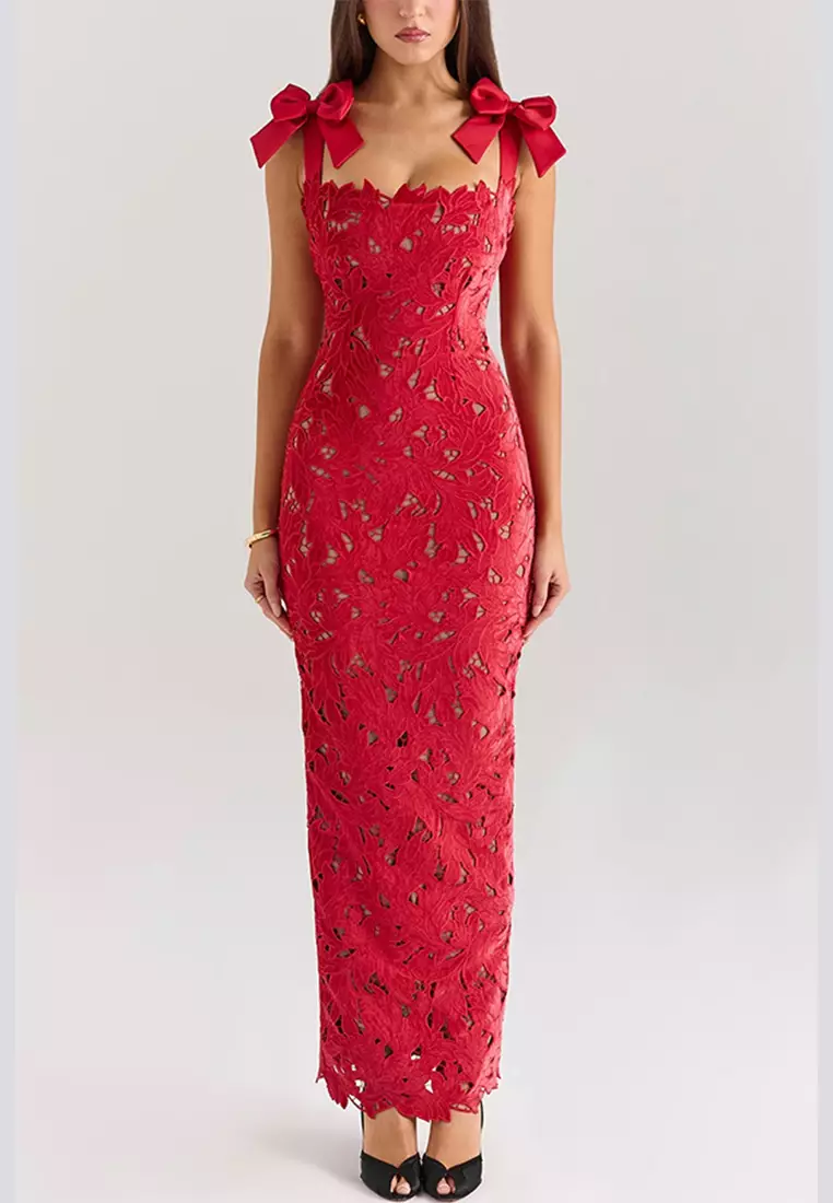 新款花邊蝴蝶結休閒連衣裙CA25042255RD