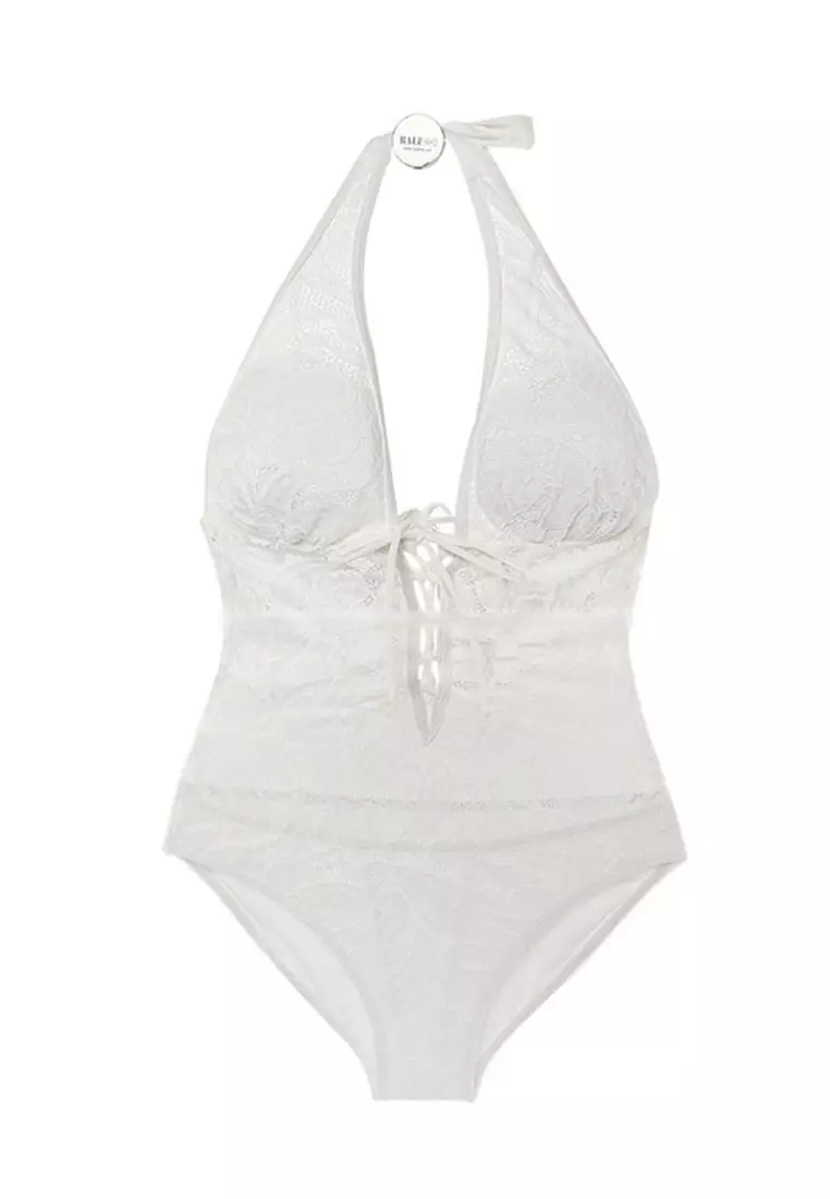 白色蕾絲三角連體泳衣 CA071714