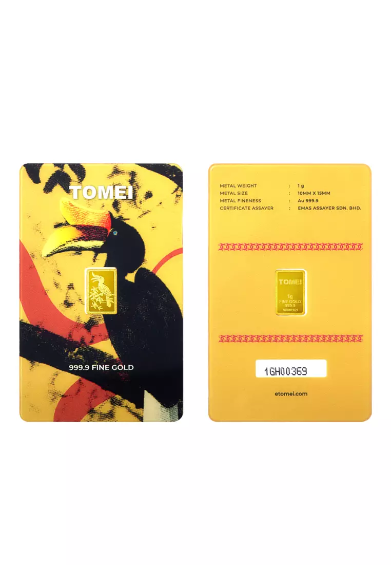 TOMEI Hornbill Gold Bar 1G Yellow Card | Fine Gold 9999