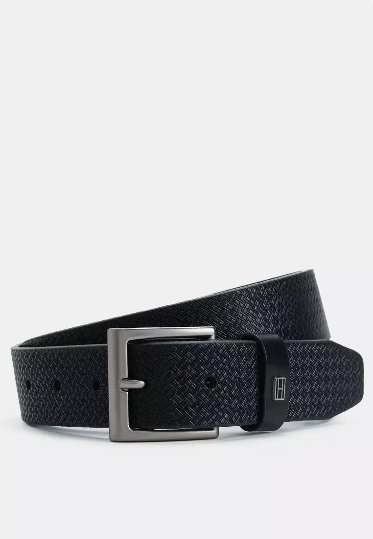 標誌印花方形扣皮革腰帶 - TH 主線