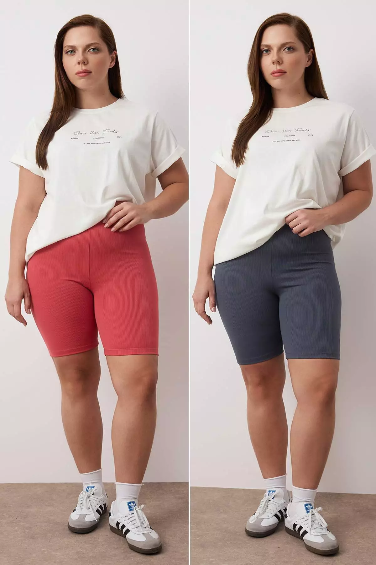 TrendyolAnthracite-Dry Rose High Waist 2-Pack Biker Ribbed Knit Plus Size Leggings Tbbss24Bv00000159.00