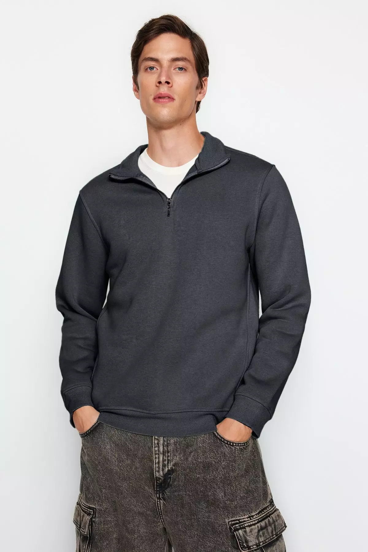 TrendyolAnthracite Regular/Normal Cut Stand Collar Zippered Warm Basic Sweatshirt TMNAW24SW00041249.00