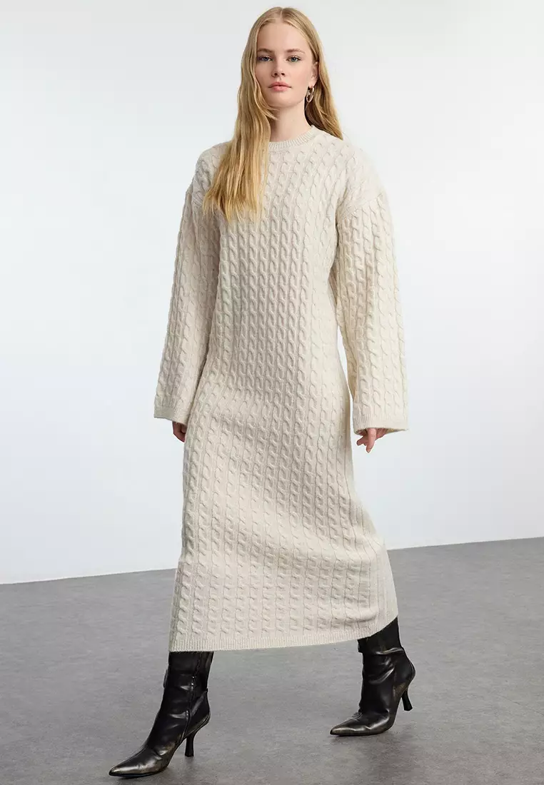 TrendyolBeige Braided Knitwear Dress Tctaw25Eb00035439.00