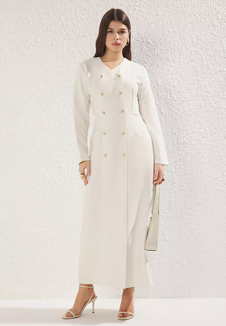 Beige Buttoned Woven Fabric Dress TCTSS25EB00027
