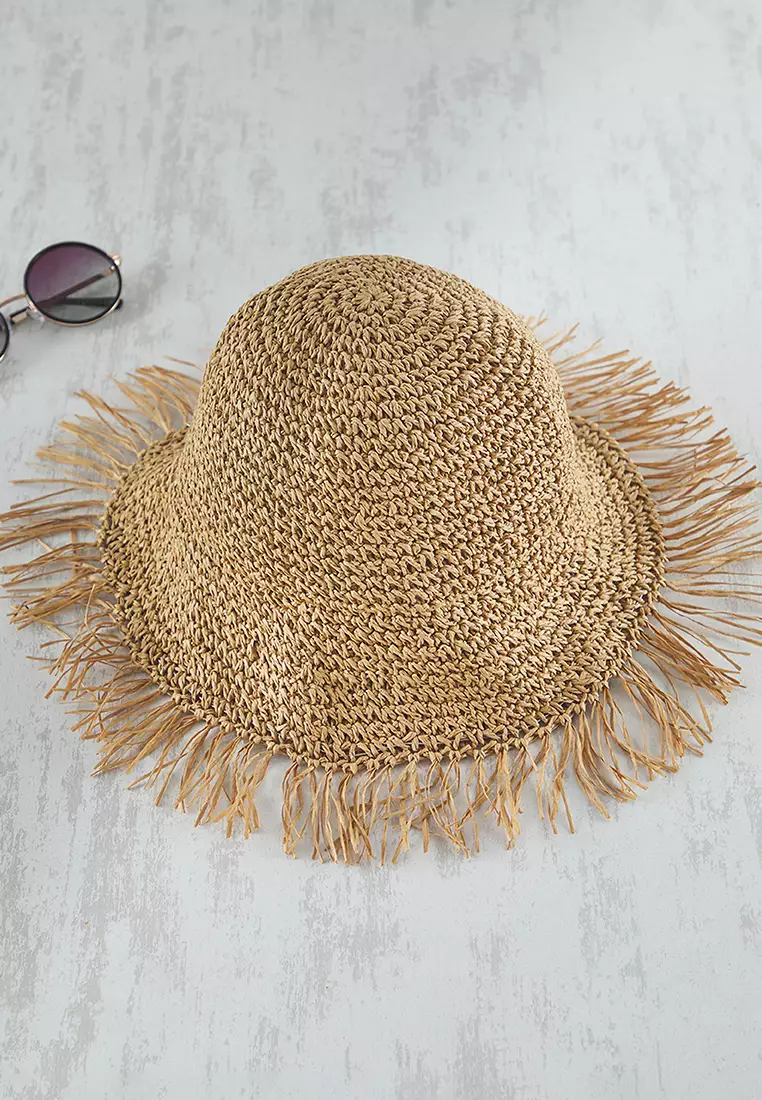 Beige Tassel Straw Women's Hat TBESS25SP00000